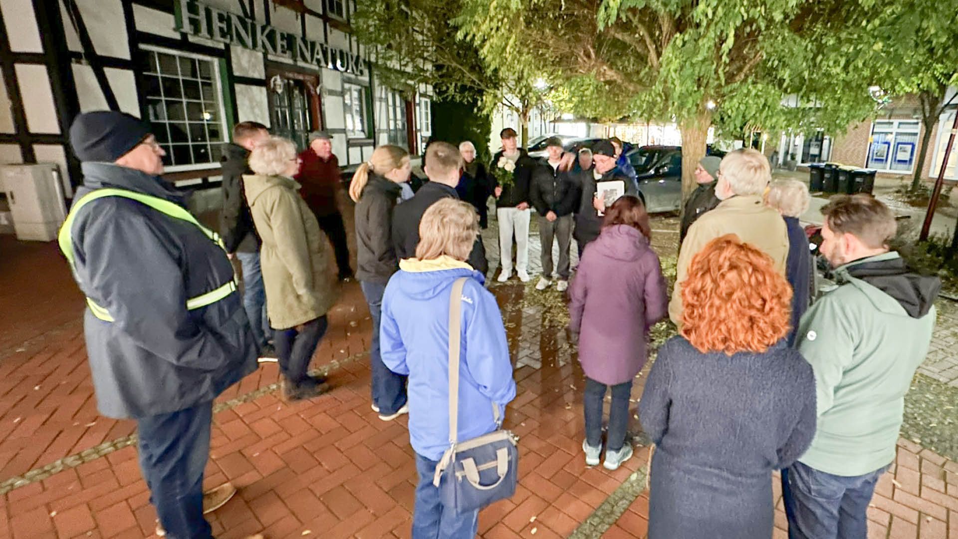 Am Abend versammelten sich rund 70 Personen an der ehemaligen Synagoge, deren Standort heute durch einen Bodenrahmen markiert ist. Bürgermeister Florian Haase betonte dort die Bedeutung des Erinnerns – besonders in der heutigen Zeit. Anschließend hielt Kai Büntemeyer eine bewegende Gedenkrede.